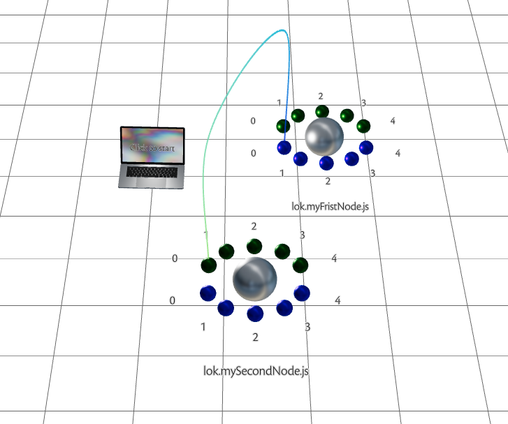 lok.myFirstNodeandlok.mySecondNodeto the gird floor and connect usingpurple output port 0to thegreen input port 0